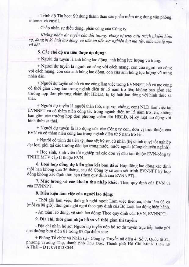Thông báo tuyển dụng( Đơn vị tuyển dụng: Công ty Truyền tải điện 4)