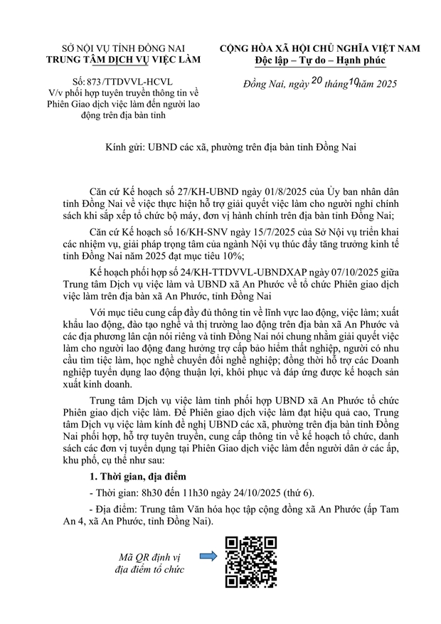 Về việc phối hợp tuyên truyền thông tin về Phiên giao dịch việc làm đến người lao động trên địa bàn tỉnh