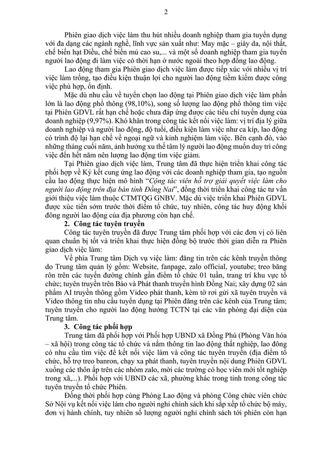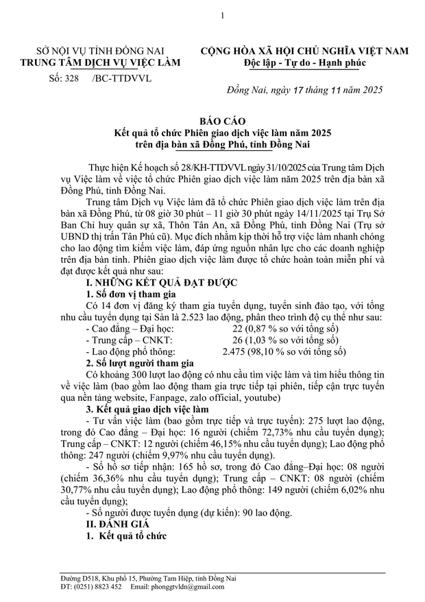 Kết quả tổ chức Phiên giao dịch việc làm năm 2025 trên địa bàn xã Đồng Phú, tỉnh Đồng Nai