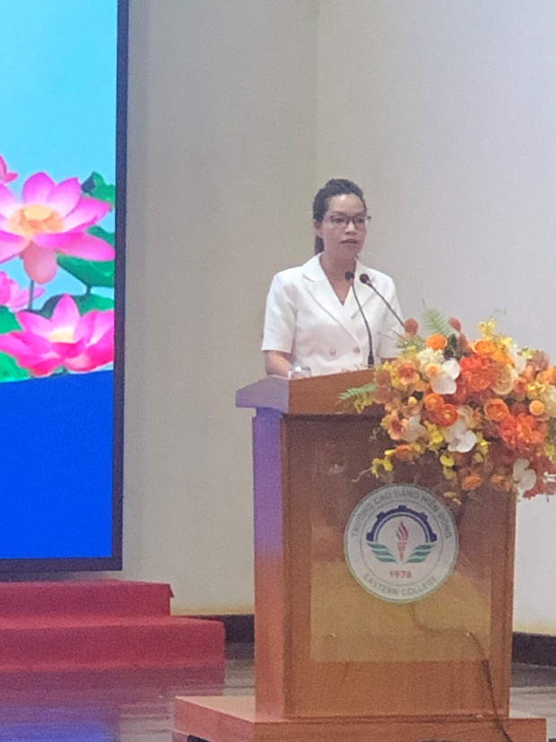 Bà Hoàng Thúy Vũ, Phó Chủ tịch UBND phường Bình Phước phát biểu tại Ngày hội việc làm |