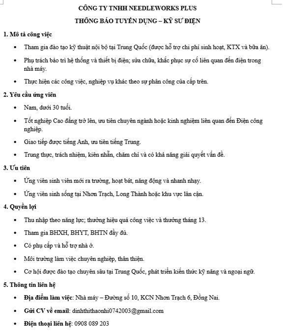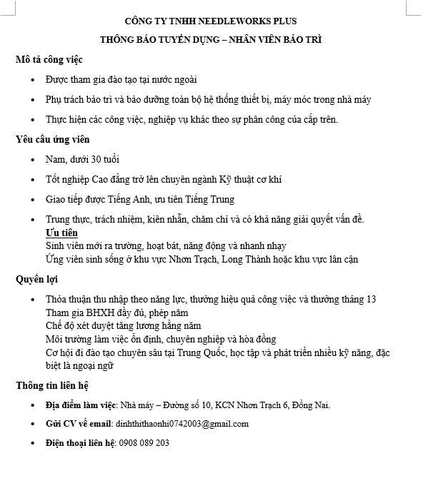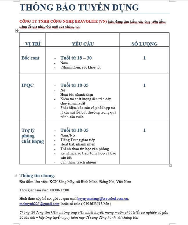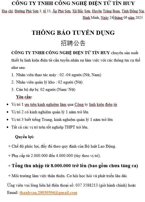 - Email: vieclammoi.dongnai@gmail.com