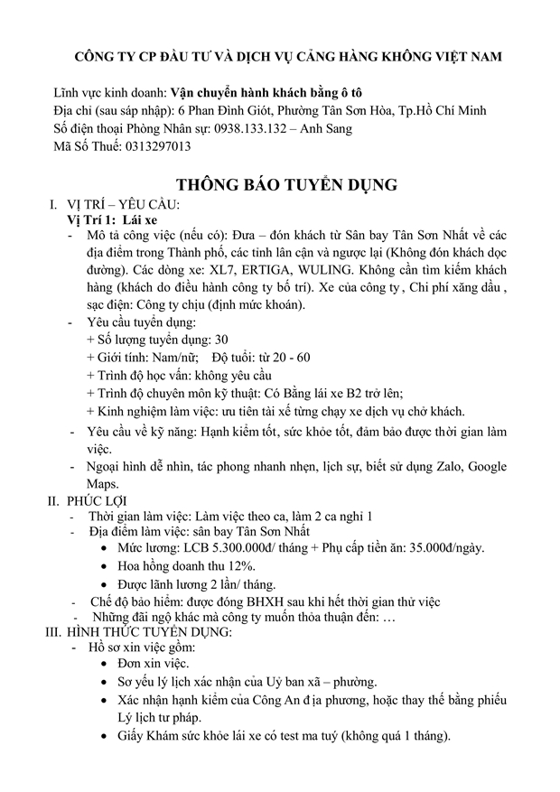 Infographics - Thông tin tuyển dụng từ doanh nghiệp (Nhà tuyển dụng: CÔNG TY CP ĐẦU TƯ VÀ DỊCH VỤ CẢNG HÀNG KHÔNG VIỆT NAM).