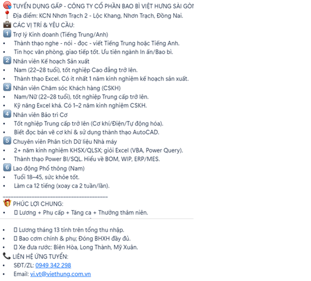 Infographics - Thông tin tuyển dụng từ doanh nghiệp