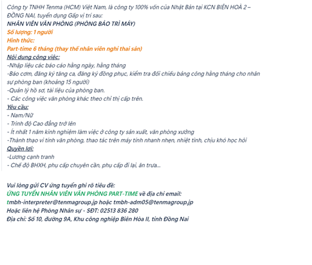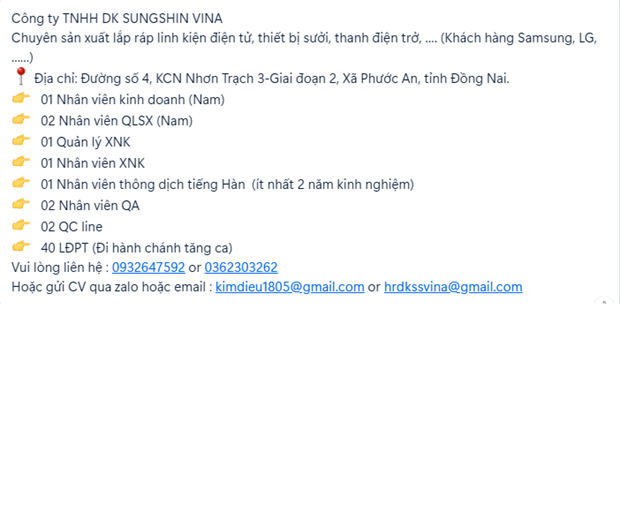 - Email: vieclammoi.dongnai@gmail.com